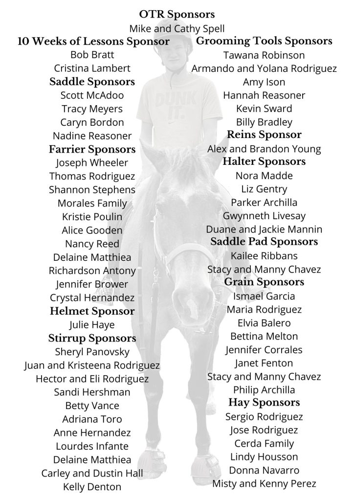 Open T.R.A.I.L. Ranch hosted the 1st Annual Sponsor My Ride Fundraiser throughout the months of June and July 2022. With the support of OTR participants, families and volunteers, OTR raised funds to support programming, spread awareness and built partnerships in the community through those who see and live the benefits of equine assisted services and therapy every time they are at the ranch.
